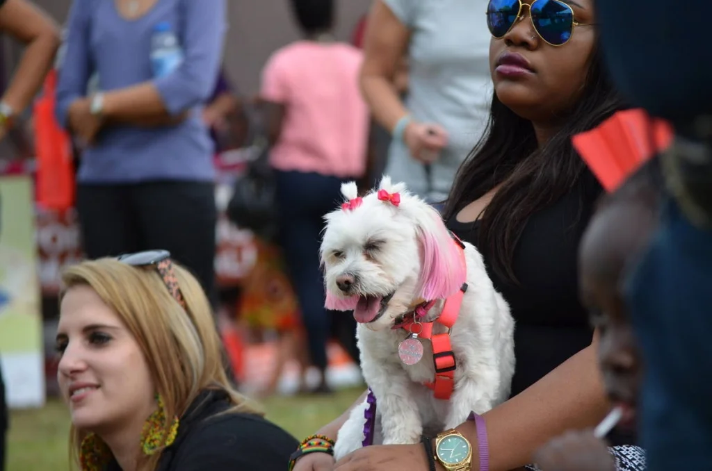 On the unexpected: There are always details at festivals that you cannot predict. A white Maltese terrier with pink-dyed fur, held up over the crowd by a woman in sunglasses, looking out at the field with an expression of studied neutrality. That image did not make any editorial point. It just made me happy.