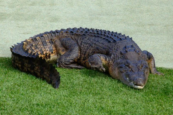 On the crocodile: The saltwater crocodile demonstration is held in an open area with a grass surround. The scale of the animal is difficult to convey in a tight crop, so I pulled back to include the lawn. The domestic setting — mown grass, a clear blue sky — makes the animal’s size and indifference more legible than any enclosure shot.