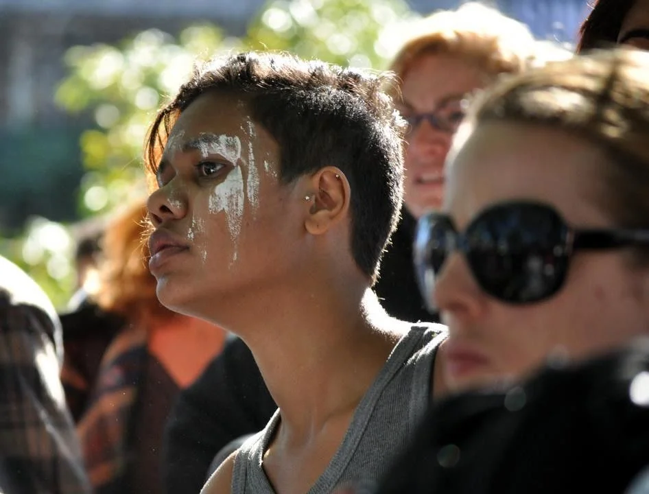 On the quiet moments: The most affecting images from the day were not the speeches or the formal ceremony — they were the quiet ones. A mother holding a newborn in a “tired” bib while the gathering happened around her. A man from the Indigenous Youth Health Service standing with his head bowed while someone spoke. A youth worker looking at the ground with an expression that contained the whole day.