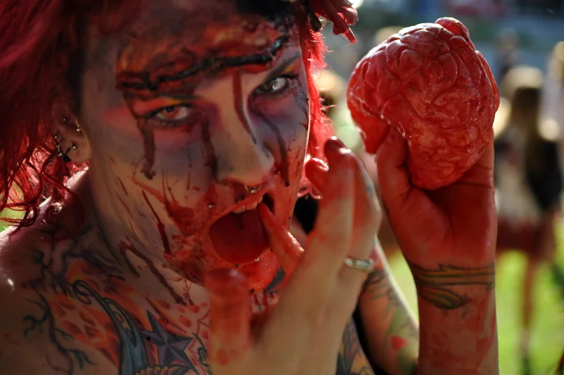 The Brisbane Zombie Walk runs through the CBD every year, drawing participants whose approach to the undead aesthetic ranges from face paint and fake blood purchased that morning to months of prosthetic makeup work that would not look out of place in a film production. The gap between these extremes is interesting — but the best photographs usually come from the committed end.