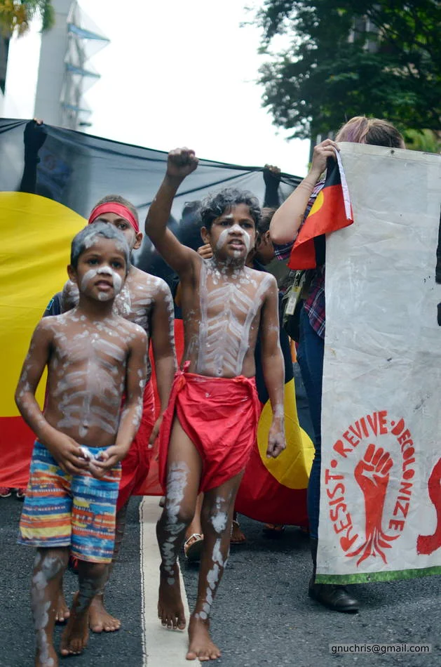 On children at protests: Some of the most significant images from Invasion Day are of children — in body paint, raising fists, carrying flags. These children are being brought to something important by their families, and they are participating fully. Photographing children at political events requires care, but omitting them would misrepresent what the day actually is.