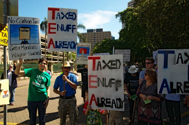 In 2011 the Gillard government introduced a carbon pricing mechanism, and the political opposition to it produced a series of public rallies across Australia. The Brisbane rally was held in the CBD, and I photographed it in the same way I photograph any public political gathering — trying to document what was actually there rather than what I thought should be there.