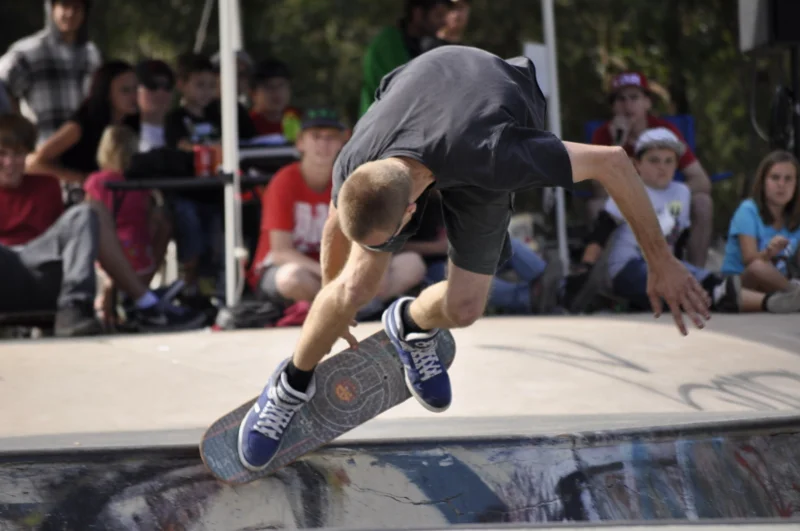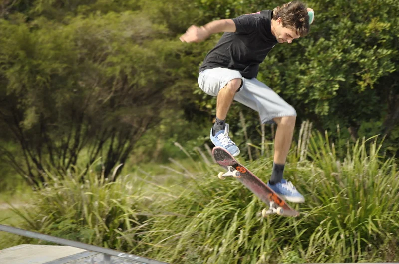 On detail shots: Some of the most interesting skating images are not the aerial tricks but the close shots of footwork — the moment of a grind, the relationship between shoe and surface. Getting low and close for these requires being comfortable with the fact that a fall will come toward you. I find a short telephoto more useful than a wide lens for this work.
