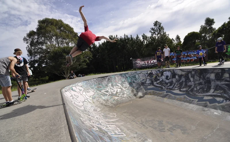 The Kuraby Skate Park is a well-designed facility with a full bowl, a half-pipe, and a flat section with rails and ledges. The KBR crew had been building their event around the park for some time, and the competition drew participants from across southeast Queensland.