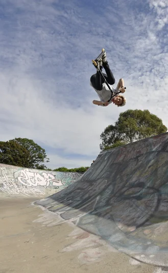 The composite image at the top of this post is from the scooter section of the Konnekting Bowl Rollers comp at Kuraby — a multi-exposure sequence showing a front flip from entry to landing in a single frame. I made it to capture something that the eye alone can’t hold: the complete arc of a trick that happens in under a second.