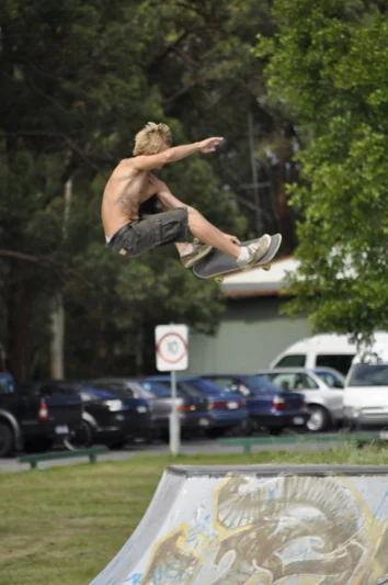 On scooter riding: Scooter riders at events like this are often the most technically ambitious competitors. The front and back flip tricks being done at the Kuraby comp were at a level that would surprise anyone who thinks of scooters as a child’s toy. The photography is the same as for skateboarding — anticipate the peak, be ready before the trick starts, know the approach direction.