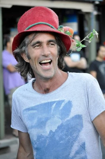 On the crowd as subject: At the Kurilpa Derby the crowd is as photogenic as the performers. The event attracts the West End community in full expression — costumes, bicycles with decorations, children in elaborate hats, elderly people watching from fold-out chairs. The man in the red hat with the plant growing out of the brim was standing near the barrier doing nothing in particular. I made his portrait because it seemed to capture something essential about the day.