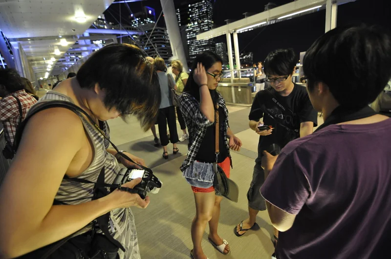 By the third week, the group had found its rhythm. People arrived knowing roughly what to expect — a walk, some technical discussion, a lot of standing in the dark trying to get the exposure right on something that didn’t want to cooperate. Kurilpa Bridge was the week’s subject, and it is a genuinely difficult location to photograph well.